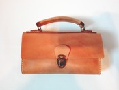 革はやや光沢のあるグレージングレザーをしております。染色はしておりませんので、経年により段々飴色へと変化していきます。使うほどに違った表情を見せてくれるバッグです。