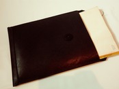 事務用品の一つですが、これをヌメ革で作るとこんなにもオシャレになりました!今では色々な形のクラッチバッグがありますが、こんなクラシックなバッグも逆に新しく感じます。写真のようにタブレットを入れるにも適しています。厚みのある革を使用していますので、丈夫であることはもちろんのこと、ヌメ革の持つ革の素材感もしっかりと感じてもらえるかと思います。